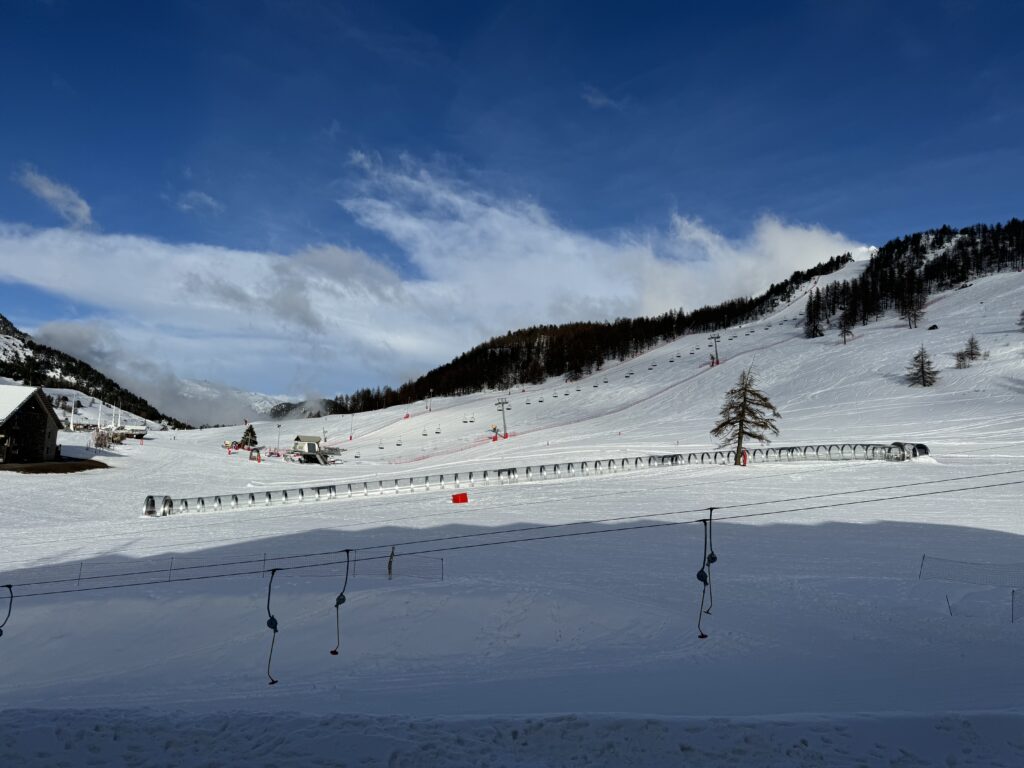 L’un des charmes majeurs de ce balcon réside dans la vue exceptionnelle qu’il offre sur Montgenèvre et les montagnes italiennes de Sestrière. À chaque moment de la journée, le panorama évolue, révélant des jeux de lumière spectaculaires entre ombres et reflets dorés sur les sommets.
