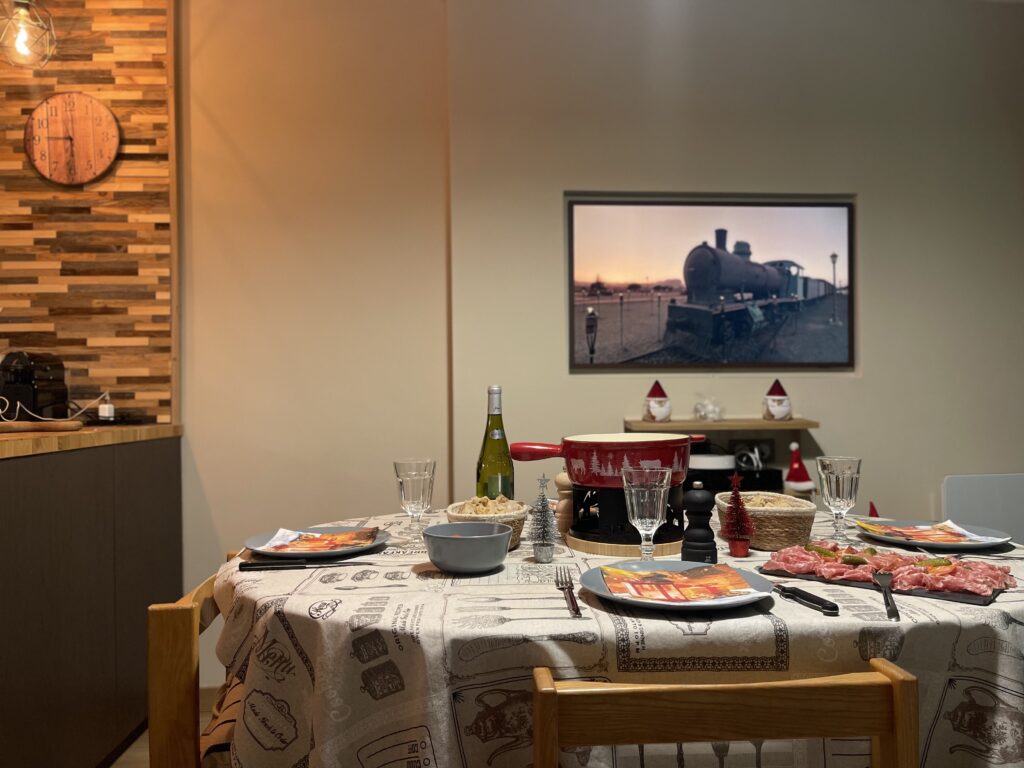 Dès l’entrée dans le salon, vous ressentez une ambiance accueillante et apaisante. Cet espace de vie lumineux a été conçu pour offrir un cadre agréable après une journée passée en plein air. Que vous reveniez du ski, d’une randonnée ou d’une balade en raquettes, vous apprécierez vous détendre dans ce séjour convivial et parfaitement aménagé.